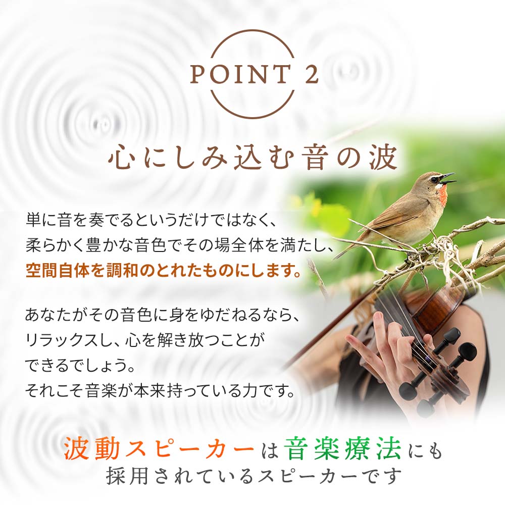 それこそ音楽が本来持っている力です。波動スピーカーは音楽療法にも採用されているスピーカーです。