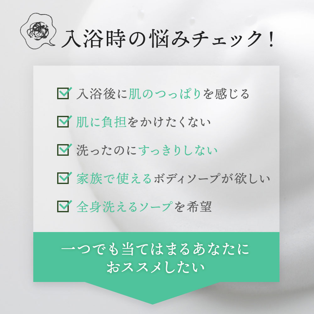 冬になると乾燥で痒みから肌が黒ずんでしまうほどでしたが、今は全くなくなりました。洗い上りがさっぱりしているのにかさかさにならない!これからも使い続けます。 -