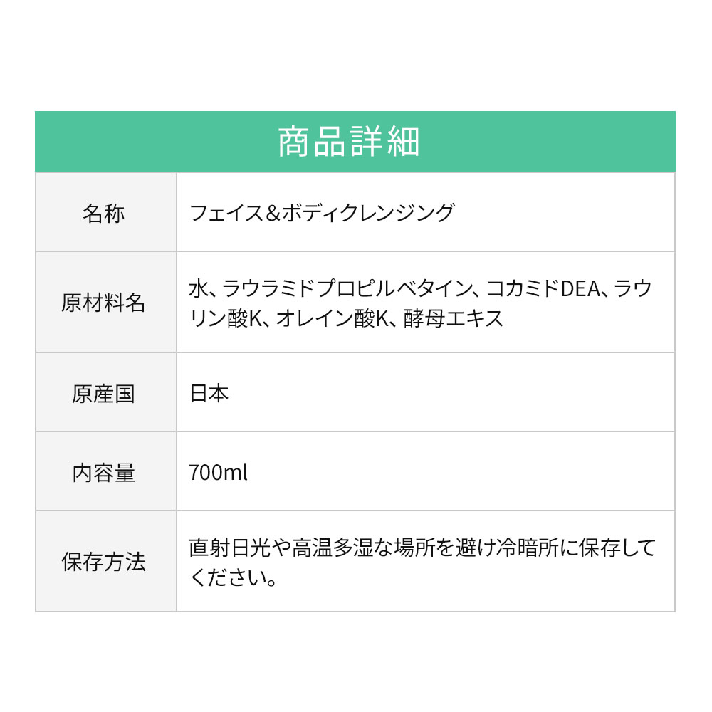 洗顔・メイク落とし・ボディークレンジングをひとつでできる全身シャンプーで、うるおい成分を保ちつつ抜群の洗浄力を発揮します。