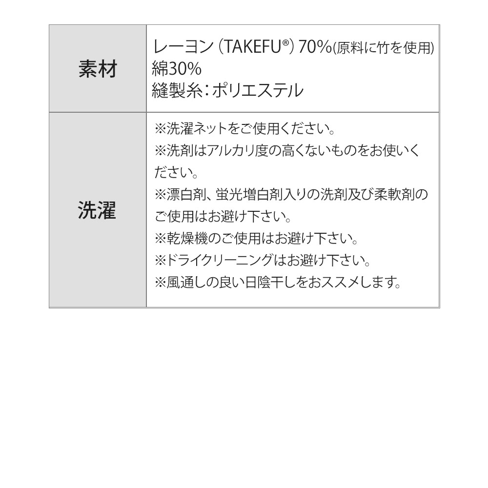※TAKEFU®は、竹原料100%で作られた再生セルロース繊維(レーヨン)で、(株)ナファ生活研究所が所有する登録商標です。レーヨンとは木や竹などの植物から作られる繊維で、石油を原料とする合成繊維とは異なります。