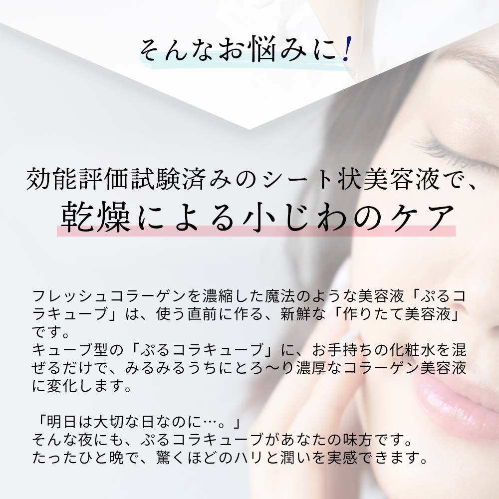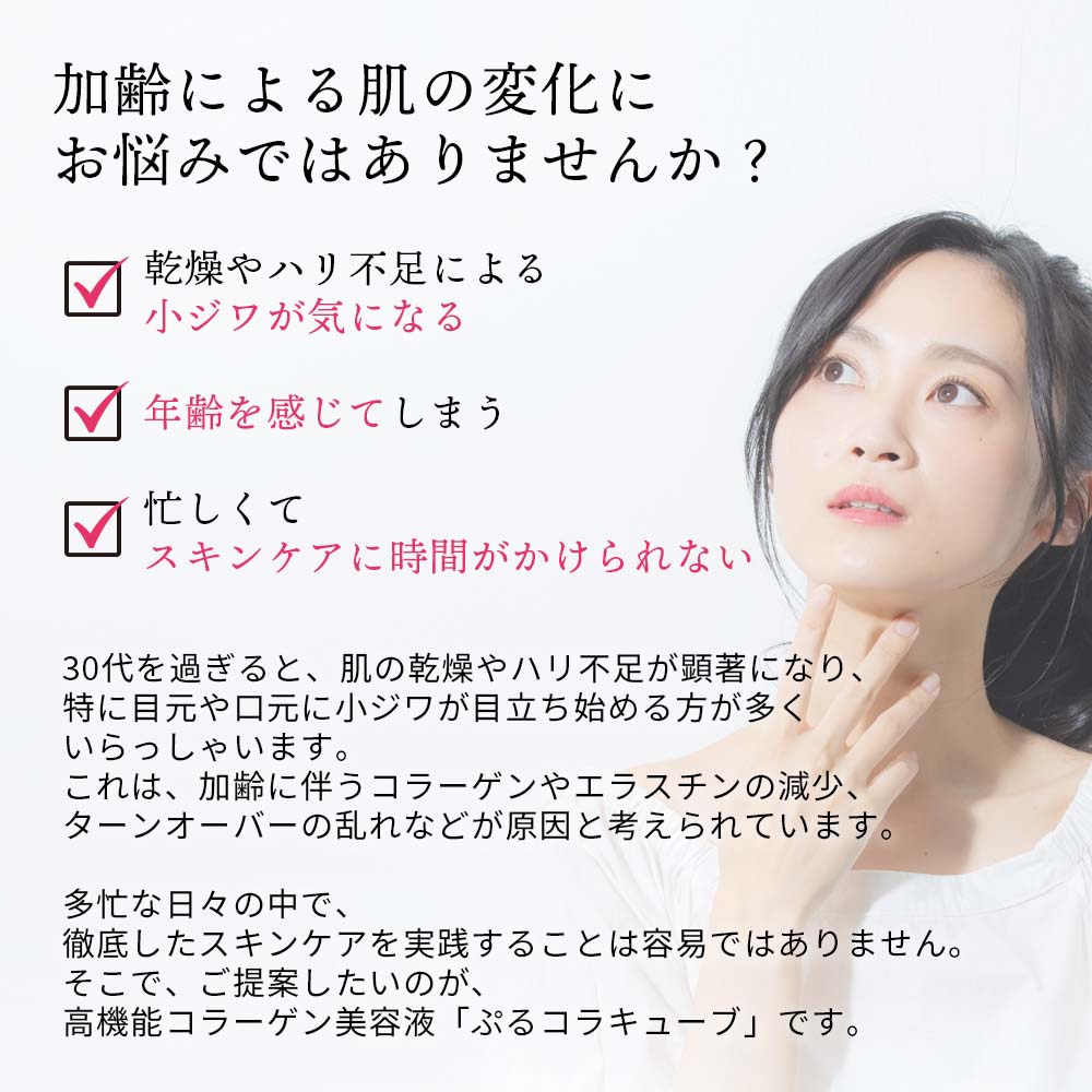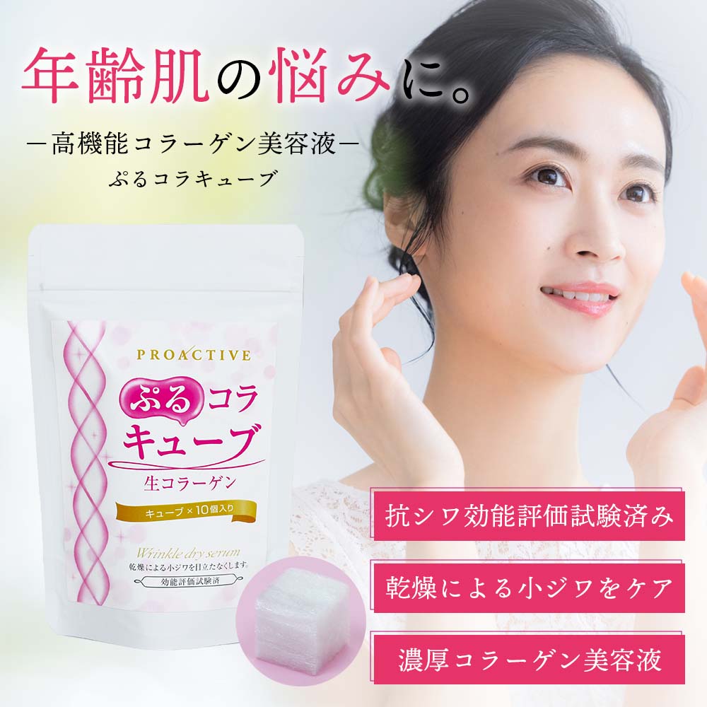 そこで、ご提案したいのが、高機能コラーゲン美容液「ぷるコラキューブ」です。