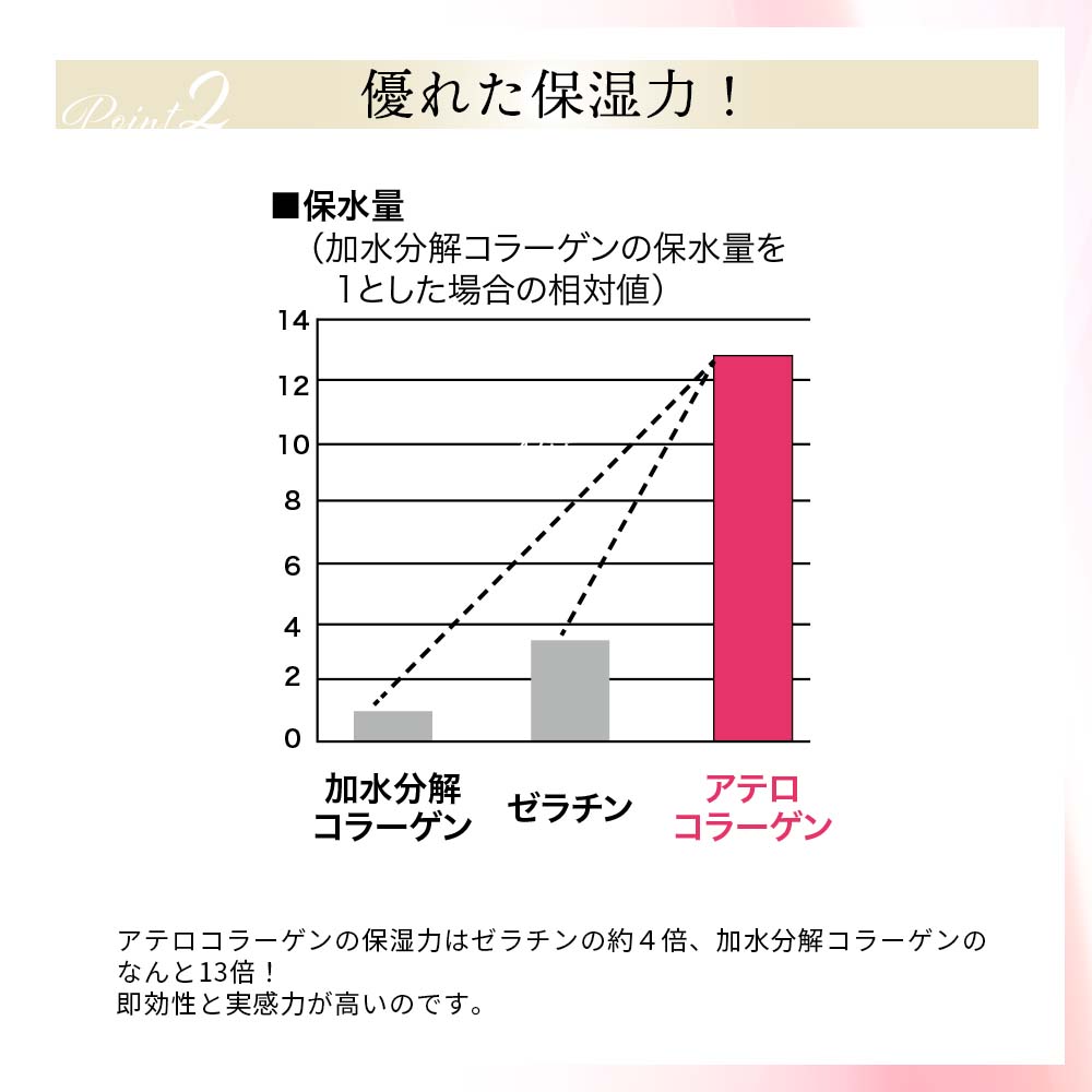 アテロコラーゲンの保湿力はゼラチンの約4倍、加水分解コラーゲンのなんと13倍!