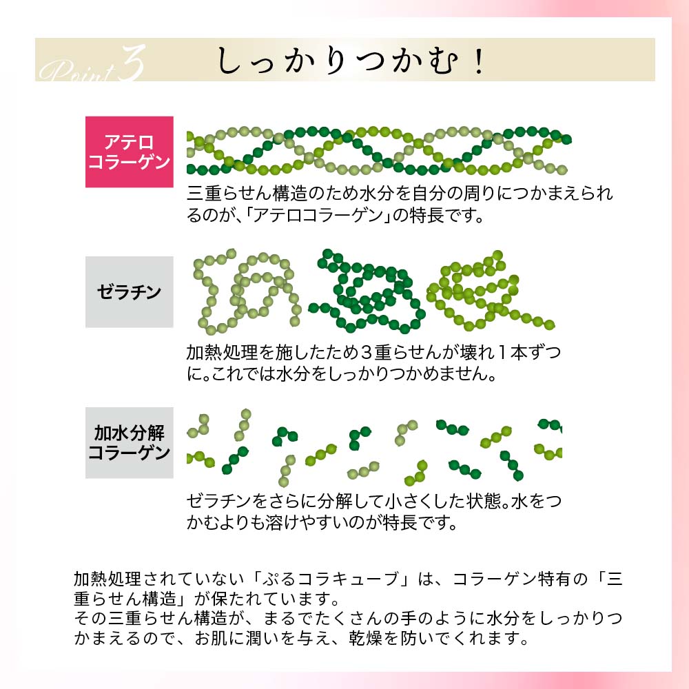加熱処理されていない「ぷるコラキューブ」は、コラーゲン特有の「三重らせん構造」が保たれています。