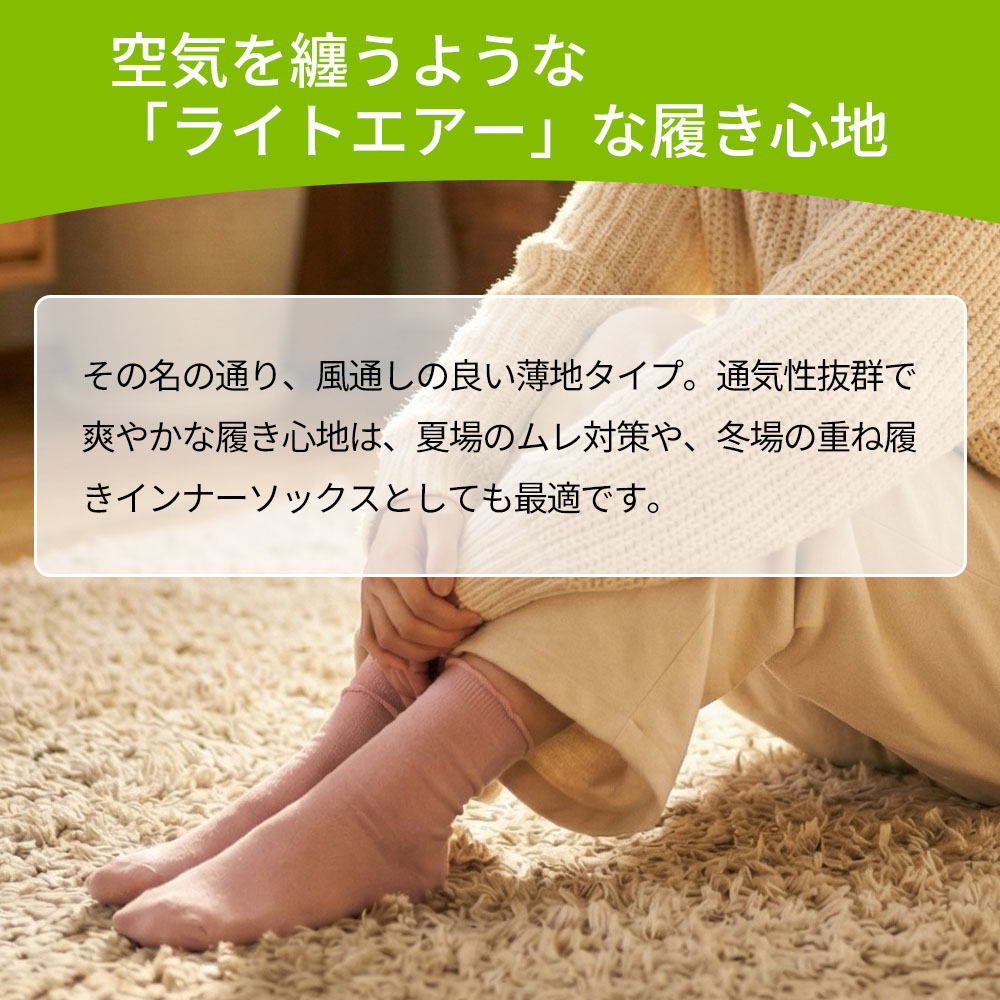 空気が通って爽やか(ライトエアー)な薄地なので、重ね履き用の靴下としてもおすすめです。