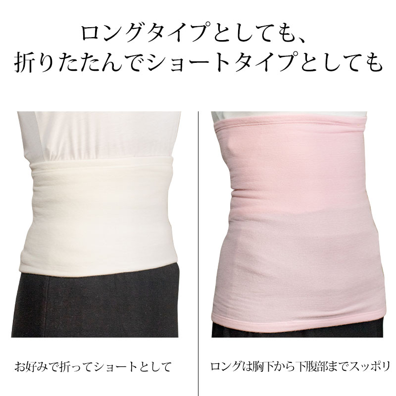 胸の下から下腹部まで、ロングタイプでやさしいフィット感のTAKEFUハラマキ。胃腸や腰など気になるおなかまわりをすっぽり包み、温めてくれます。ショートタイプがお好みの方は、折って半幅にしても便利です。