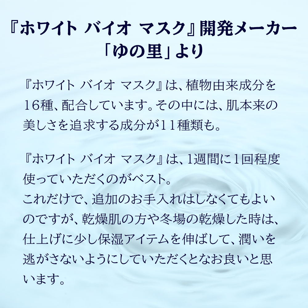 「ホワイト バイオ マスク」開発メーカー「ゆの里」より
