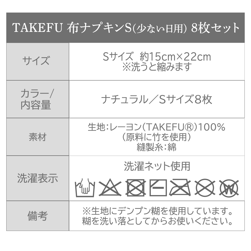 TAKEFU布ナプキンSサイズ8枚セット(少ない日用) [ネコポス送料無料]