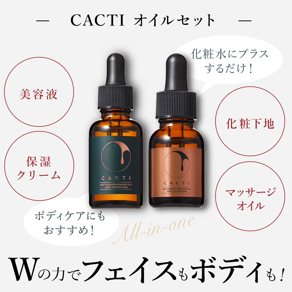そんなお悩みを解決して、いつまでもきれいでいたいあなたに、本気ではじめるオイル美容液「CACTI」がおすすめです。