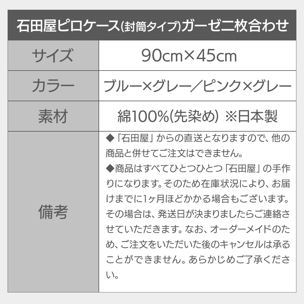 石田屋 ピローケース(封筒タイプ)ガーゼ二枚合わせ