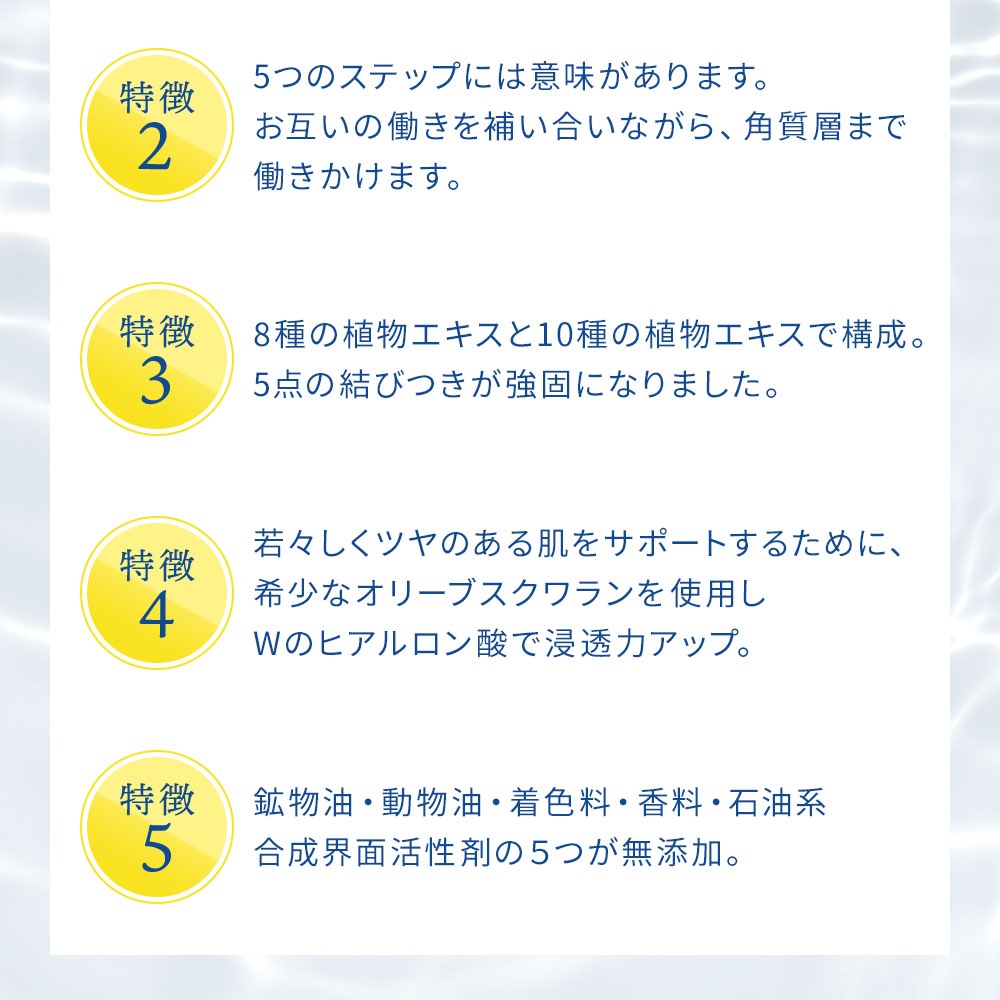 初めての方におすすめ、月のしずく化粧品コンパクトサイズ6点セット