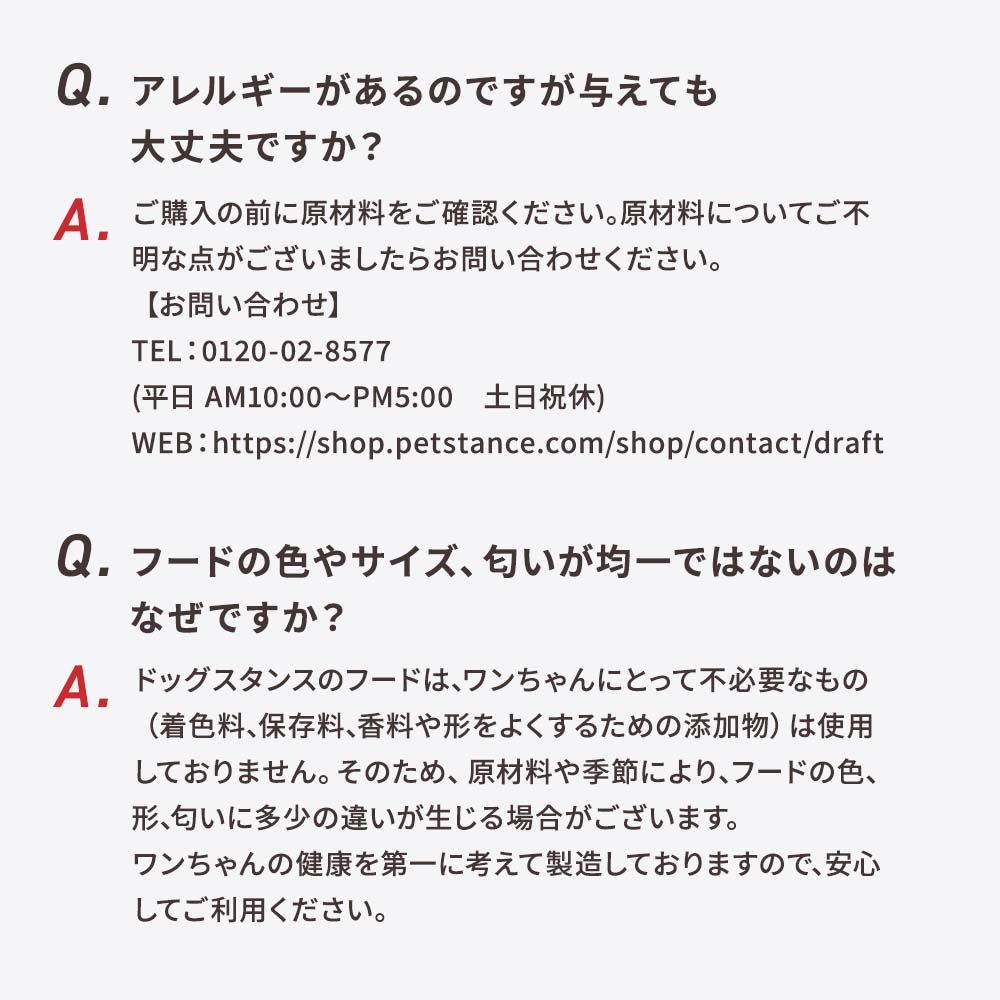 そのため季節や原材料により、フードの色、形、臭いに違いがある場合があります。あらかじめご了承下さい。