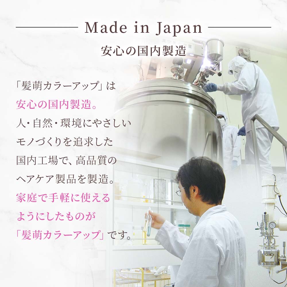 「髪萌カラーアップ」は安心の国内製造。