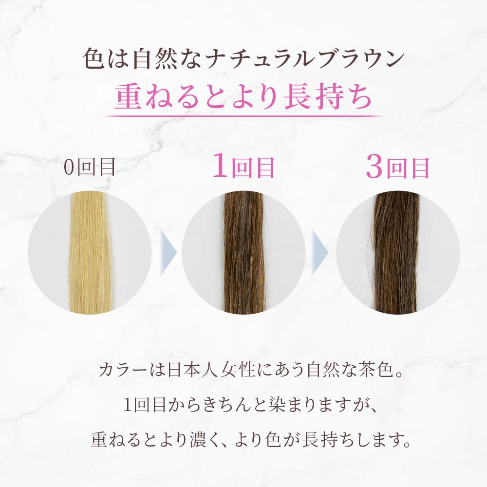 1回目からきちんと染まりますが、重ねるとより濃く、より色が長持ちします。