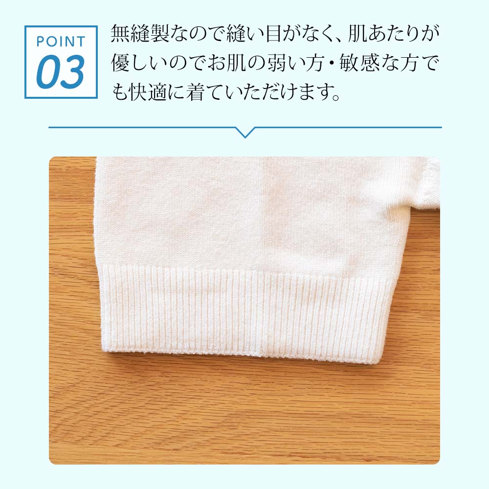 無縫製なので縫い目がなく、肌あたりが優しいのでお肌の弱い方・敏感な方でも快適に着ていただけます。