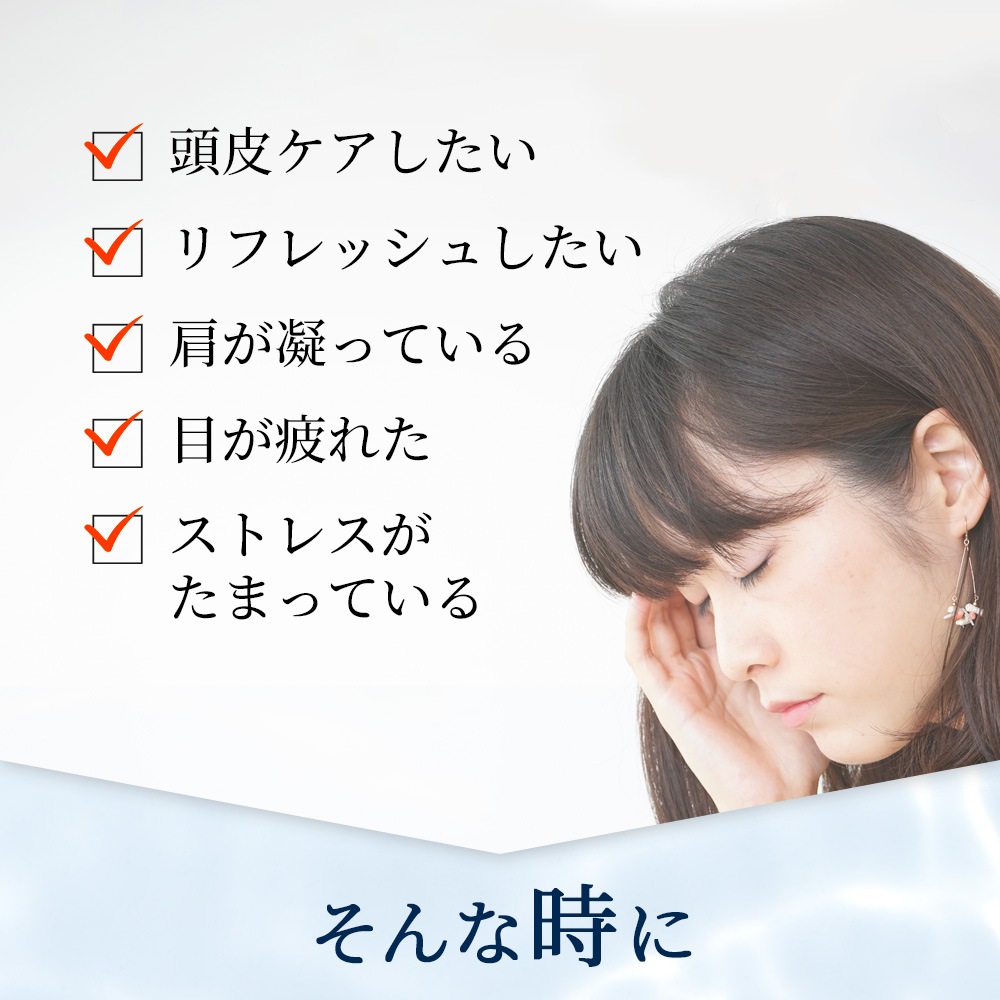 頭皮に数か所、直接適量をスプレーし、頭皮をもみほぐすようにマッサージしてください。 ローズマリーの香りが、嗅覚を通して心の深くまで働きかけ、リフレッシュ効果を高めます。