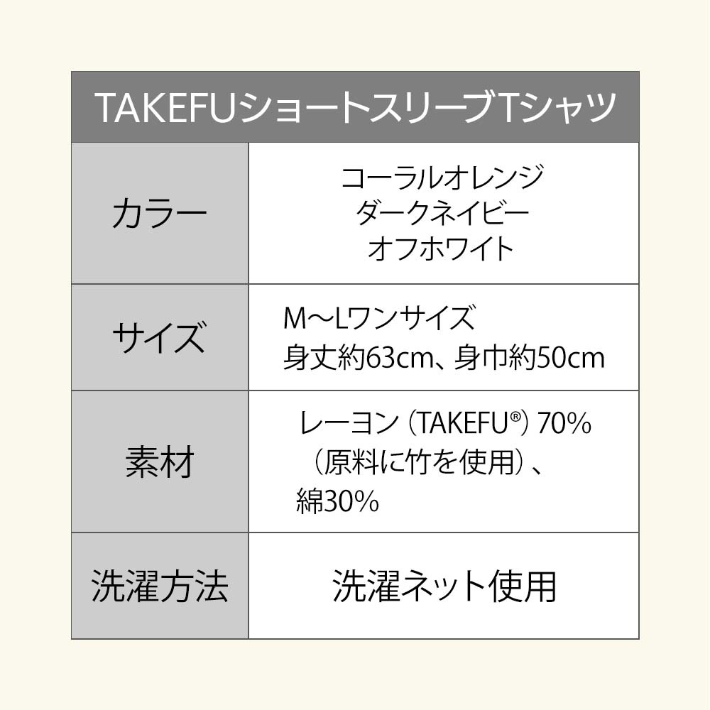 ※TAKEFU®は、竹原料100%で作られた再生セルロース繊維(レーヨン)で、(株)ナファ生活研究所が所有する登録商標です。レーヨンとは木や竹などの植物から作られる繊維で、石油を原料とする合成繊維とは異なります。
