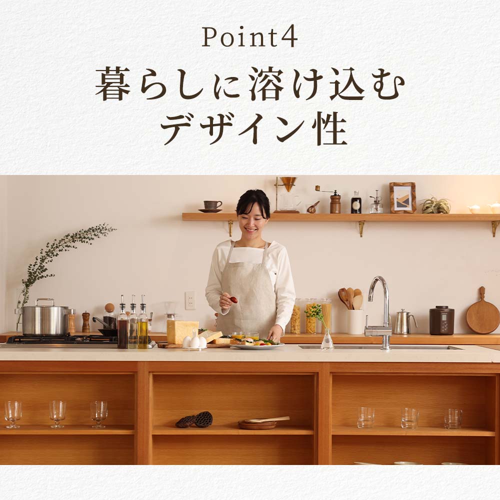 上質な雰囲気が漂うマットな質感と、ナチュラルなワントーンカラーで、インテリアのようにキッチンに溶け込みます。