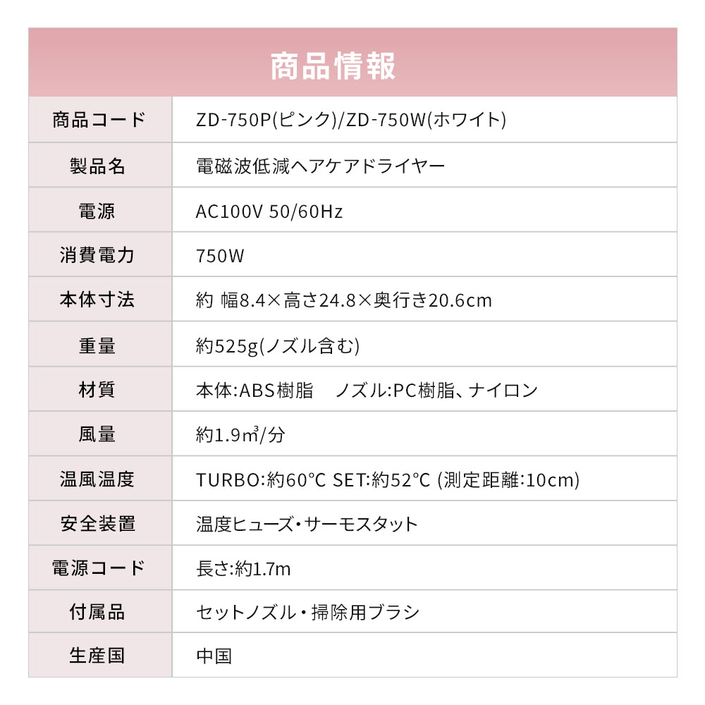 - 電磁波(磁界)低減ヘアケアドライヤー