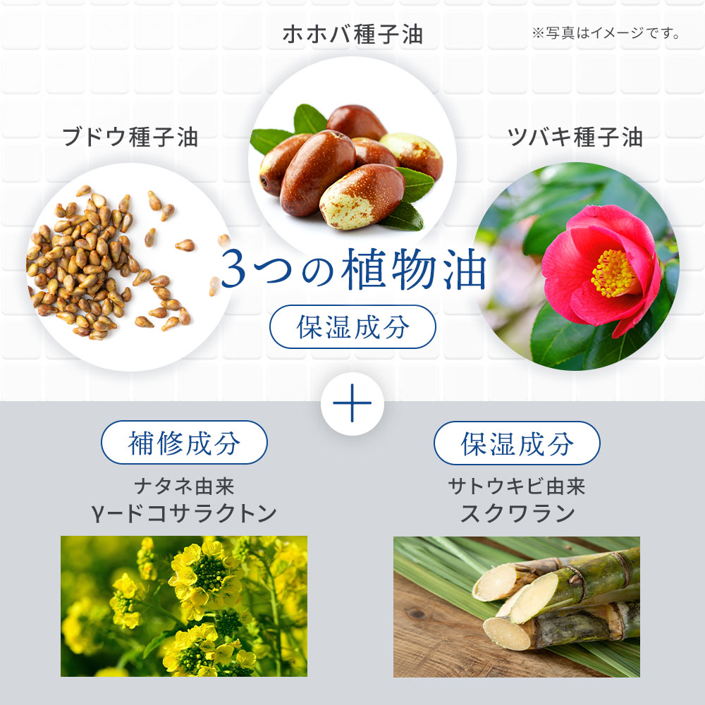 3つの植物オイルのはたらきで、毛髪内部まで浸透し、うるおいを与えます。