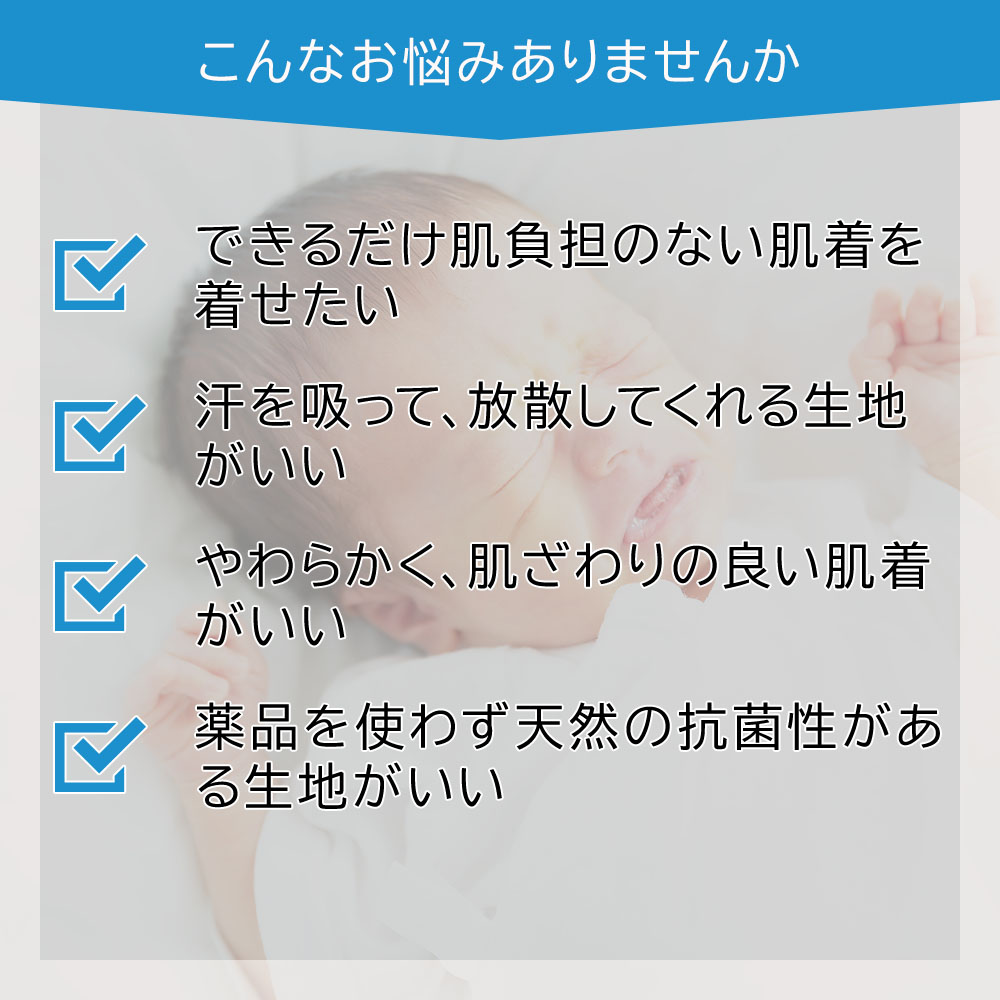 - 薬品を使わず天然の抗菌性がある生地がいい