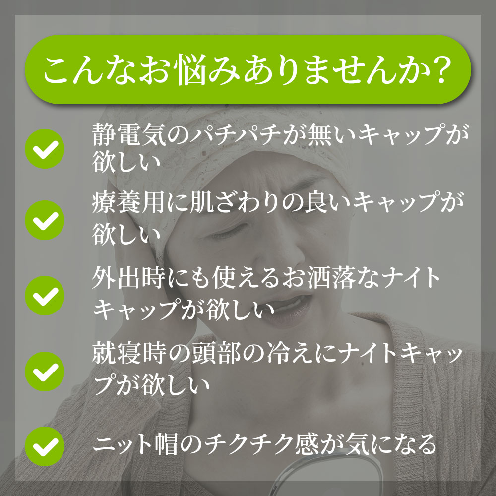 - 外出時にも使えるお洒落なナイトキャップが欲しい