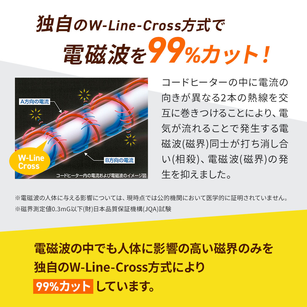 独自のW-Line-Cross方式で電磁波を99%カット!