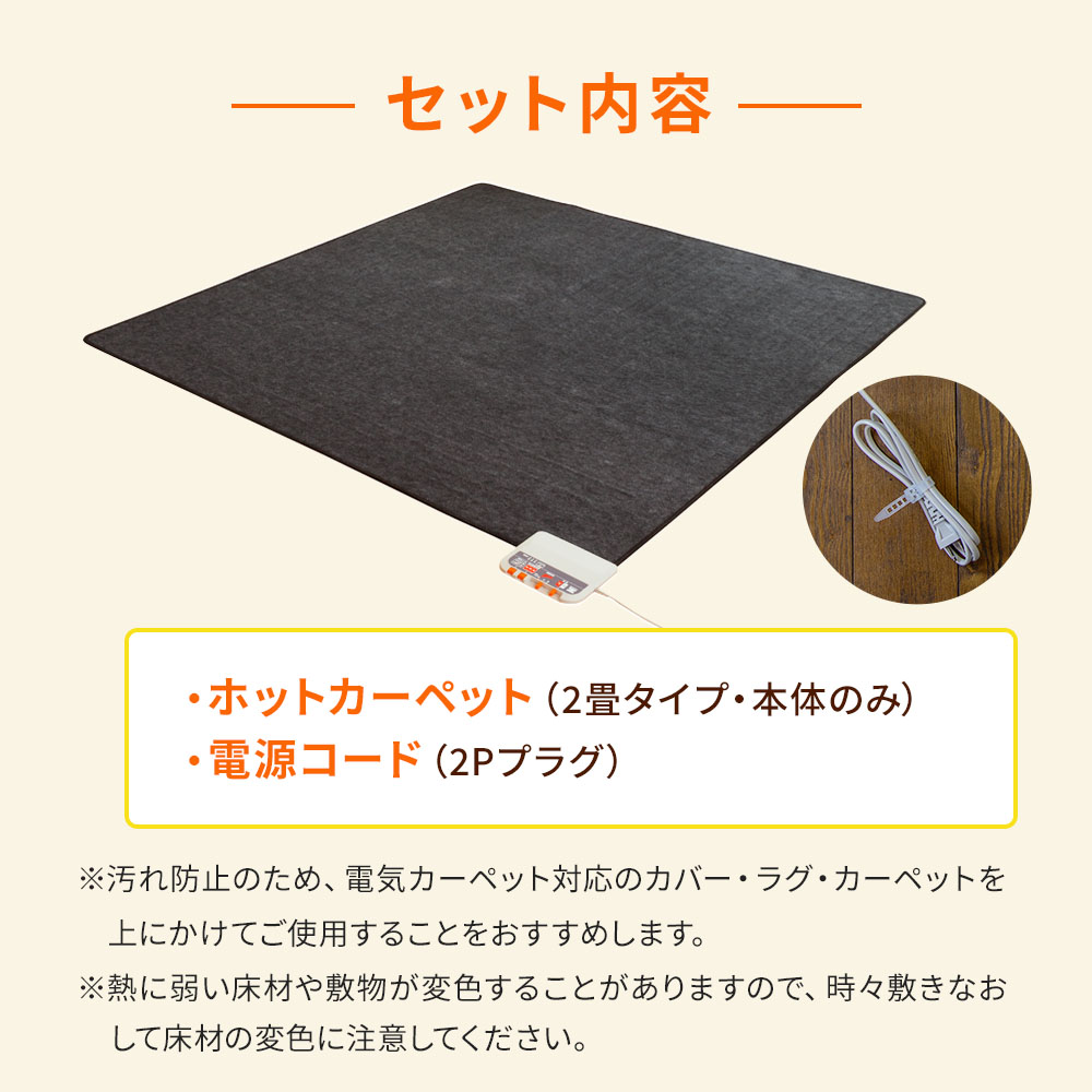 ※汚れ防止のため、電気カーペット対応のカバー・ラグ・カーペットを上にかけてご使用することをおすすめします。