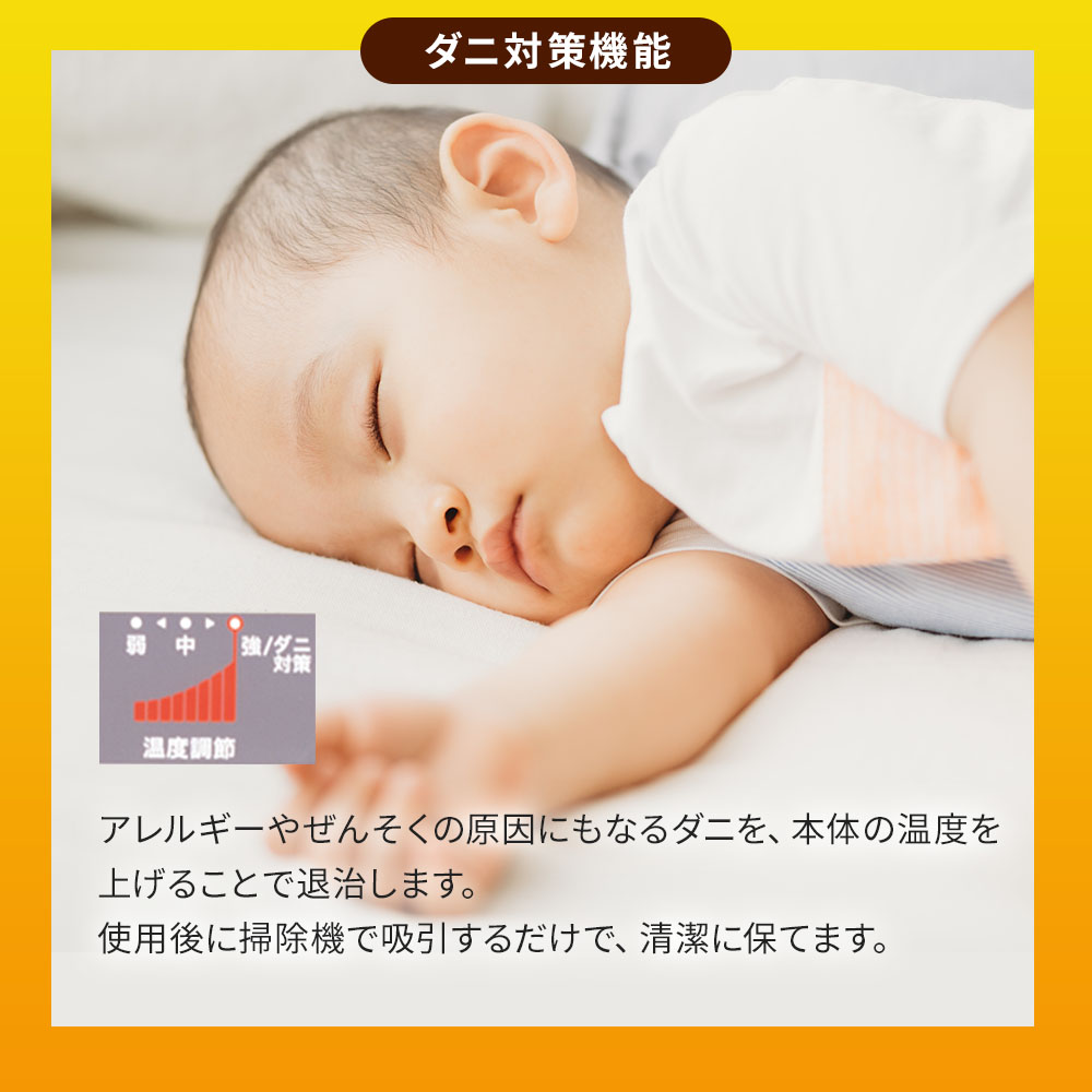 アレルギーやぜんそくの原因にもなるダニを、本体の温度を上げることで退治します。