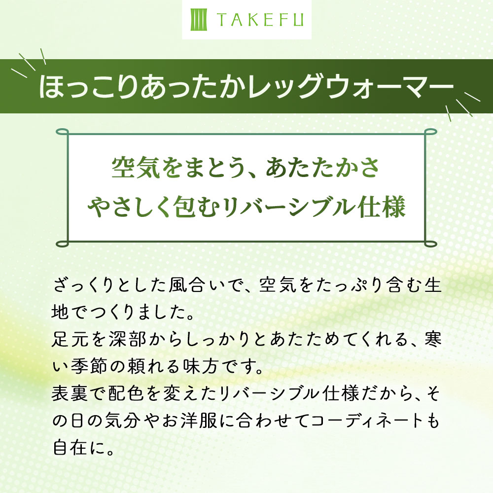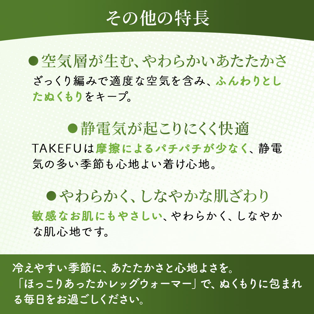 TAKEFU®ほっこりあったかレッグウォーマーの特長