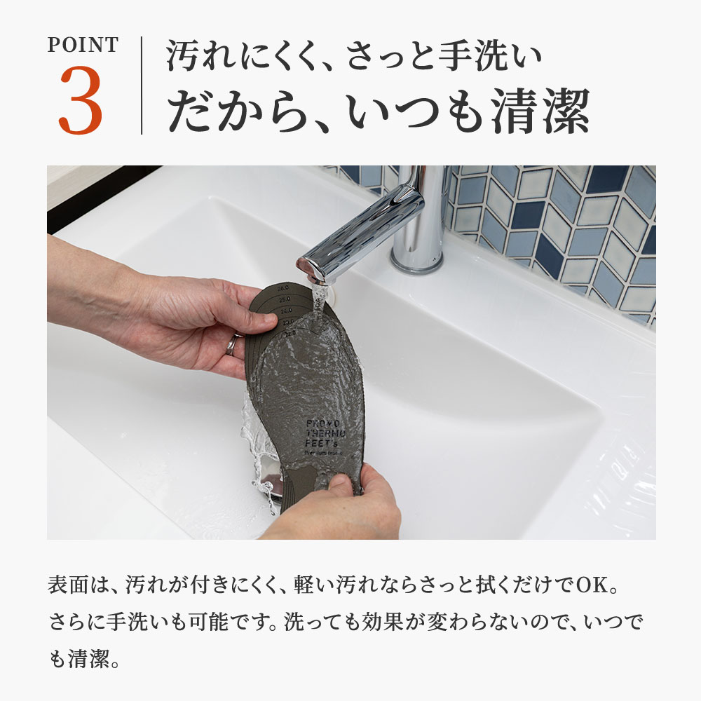 表面は、汚れが付きにくく、軽い汚れならさっと拭くだけでOK。さらに手洗いも可能です。洗っても効果が変わらないので、いつでも清潔。
