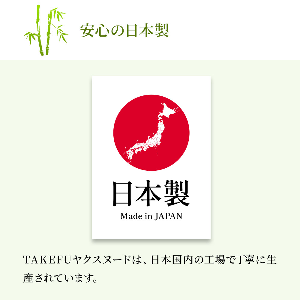 ※TAKEFU®は、竹原料100%で作られた再生セルロース繊維(レーヨン)で、(株)ナファ生活研究所が所有する登録商標です。レーヨンとは木や竹などの植物から作られる繊維で、石油を原料とする合成繊維とは異なります。