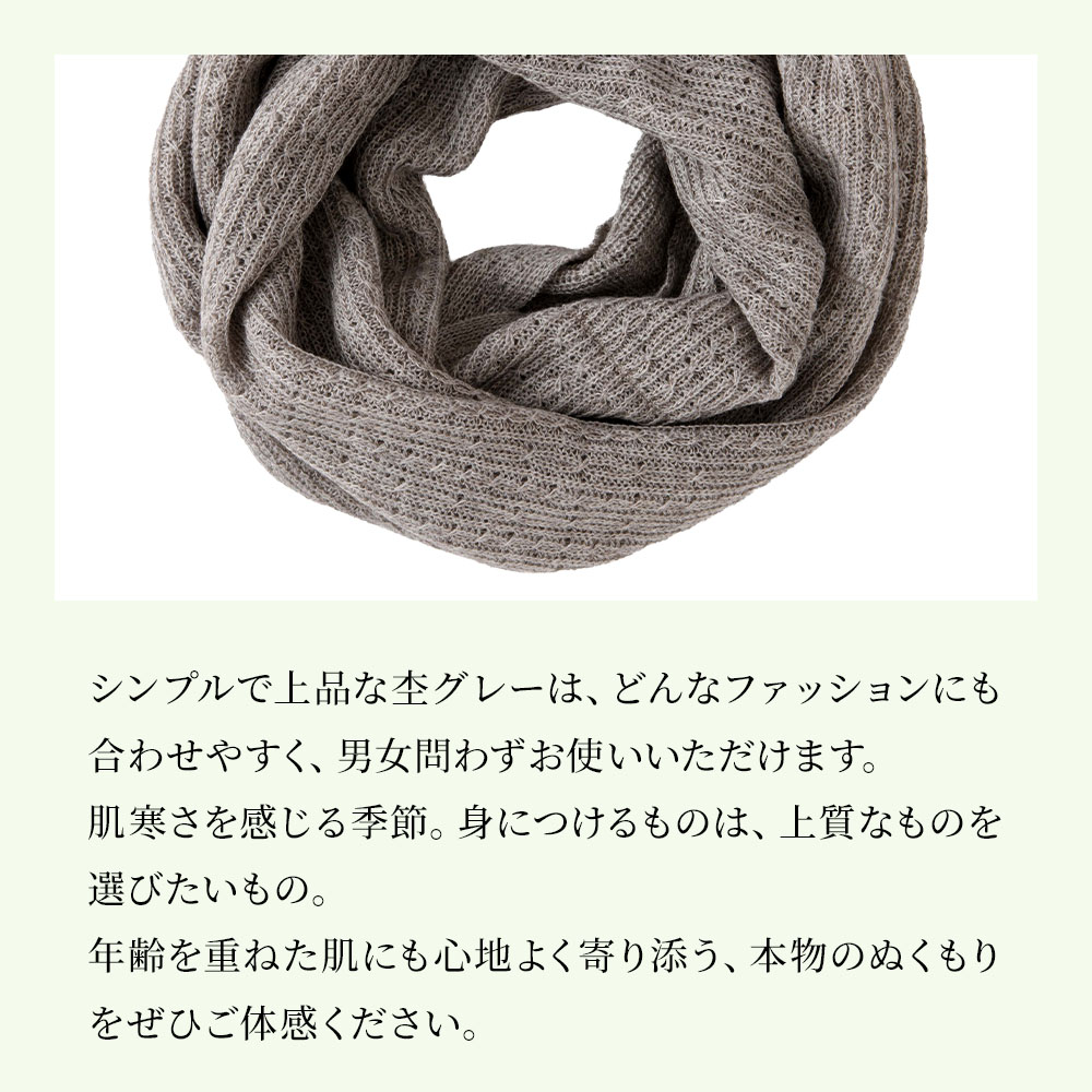 ふんわりと首元に巻くだけで、まるでカシミヤのようにとろけるような肌ざわりのスヌード。